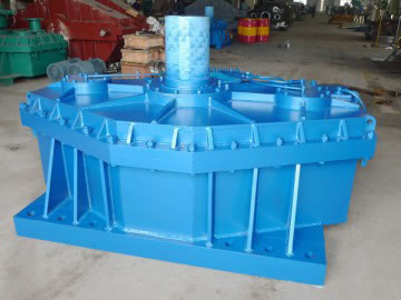 三環(huán)減速機傳動,采用行星齒輪內(nèi)嚙合方式傳遞動力。根據(jù)火車頭采用的“四桿機構(gòu)”的原理,同步旋轉(zhuǎn)二根曲軸,帶動相互平行的、嵌有內(nèi)齒輪的三只環(huán)片,在空間作平面圓周運動,內(nèi)齒輪都圍繞一只輸出軸齒輪旋轉(zhuǎn),呈現(xiàn)“多層齒圈”圍繞一個中心輪、作行星式“流轉(zhuǎn)嚙合”的布局。